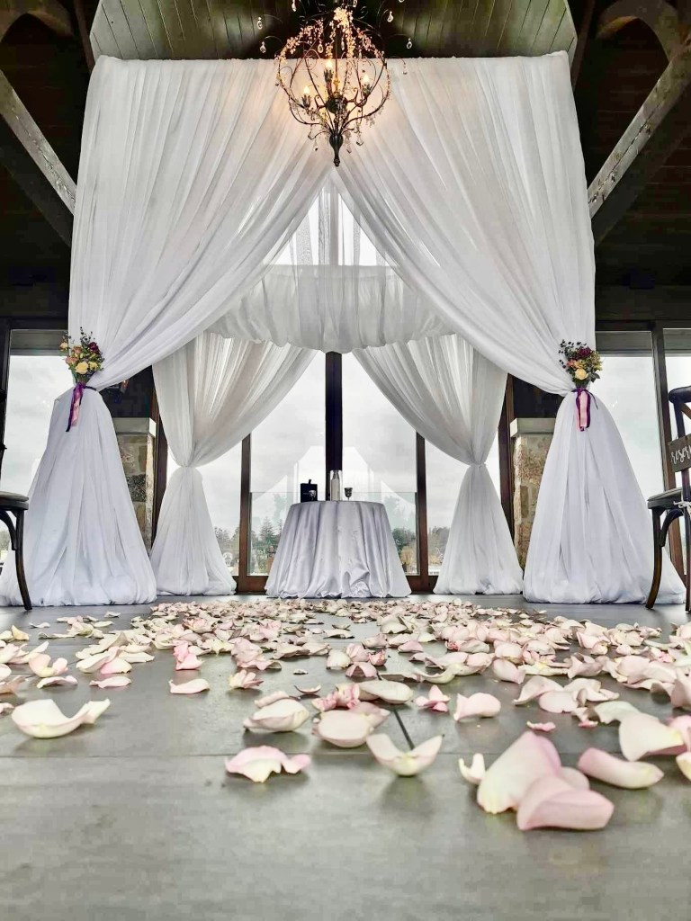 During an all-inclusive package, Set The Mood Decor is on site at your venue, prior to the ceremony and after. I personally deliver your flowers in the morning and go over holding your bouquets, etc. Sometimes we will collect your bouquets during cocktail hour and put them in your cleaned and water-refreshed vases. We may spend time redesigning altar pieces for the head table. The list of things that I may do for an inclusive package could be extensive.