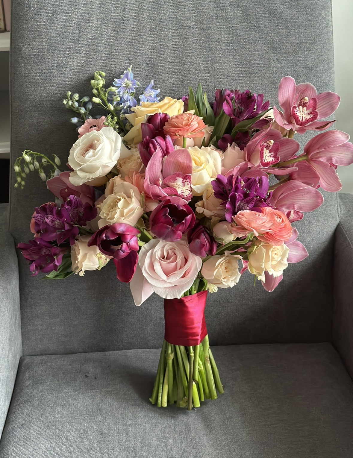 Let us not overlook the bridal flowers, for they were a true labor of love. We dedicated ourselves to curating a harmonious blend of colors, resulting in a bouquet that was both stunning and unique. It was a rare delight to incorporate cymbidium orchids, infusing the arrangement with an exquisite touch. To our delight, we discovered a tulip that perfectly complemented the overall aesthetic, adding an element of surprise and excitement.