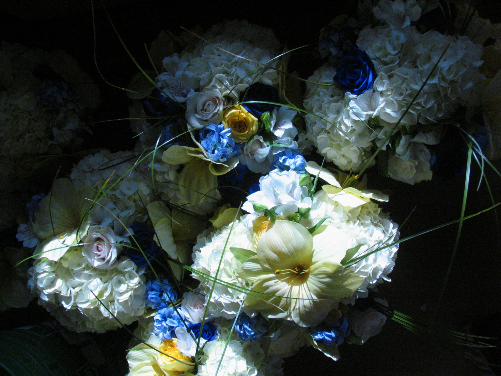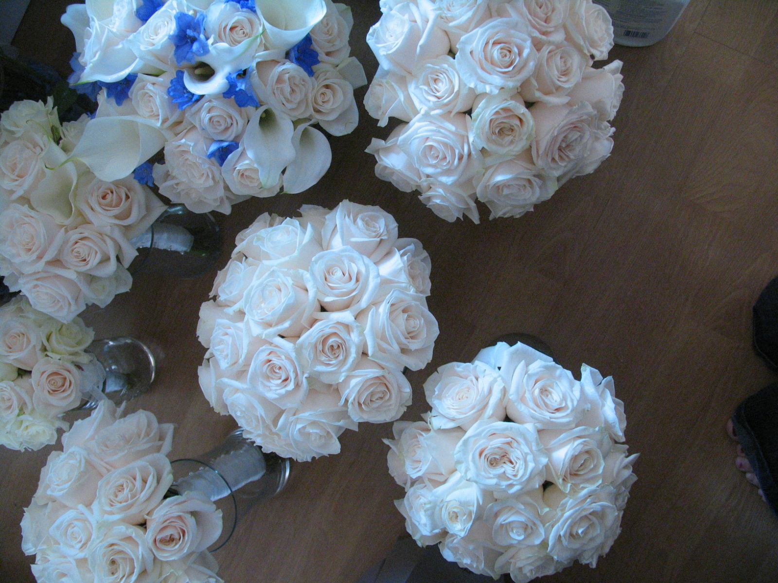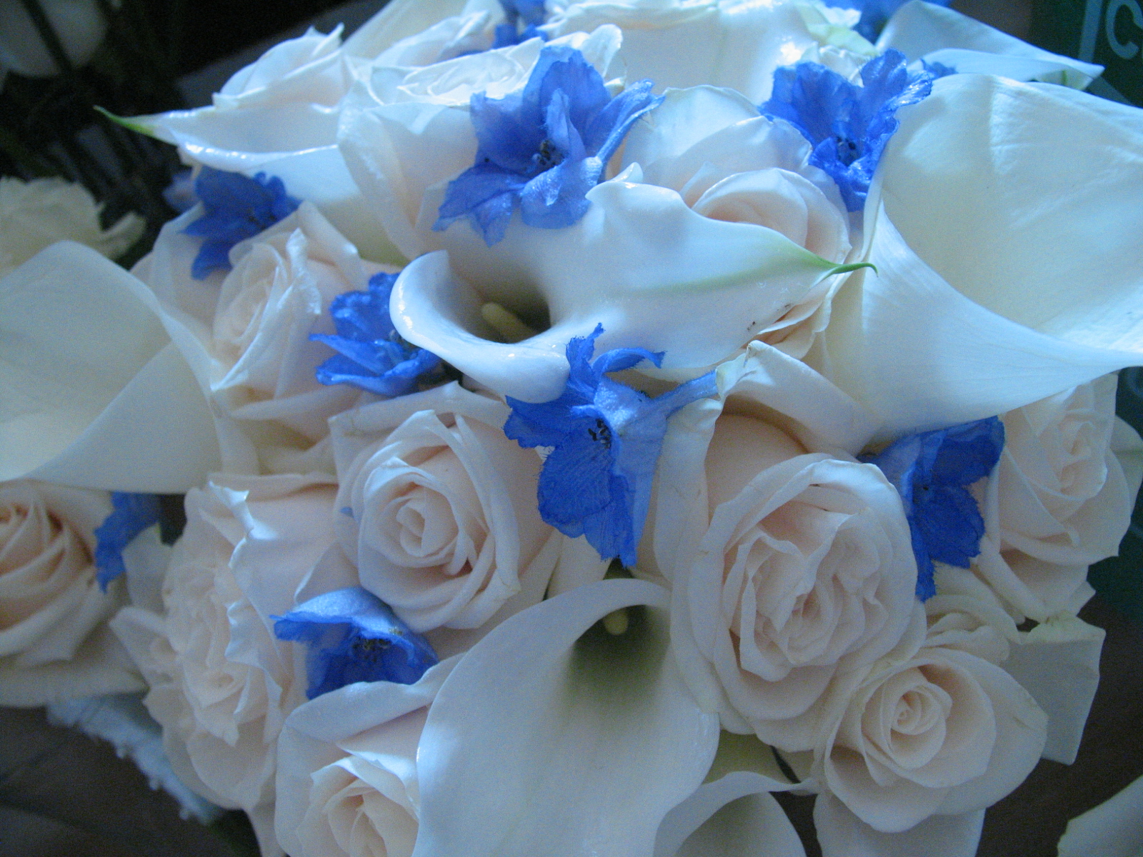 The brides bouquet was a mixture of ivory roses, calla lilies, mini calla lilies and Delphinium.