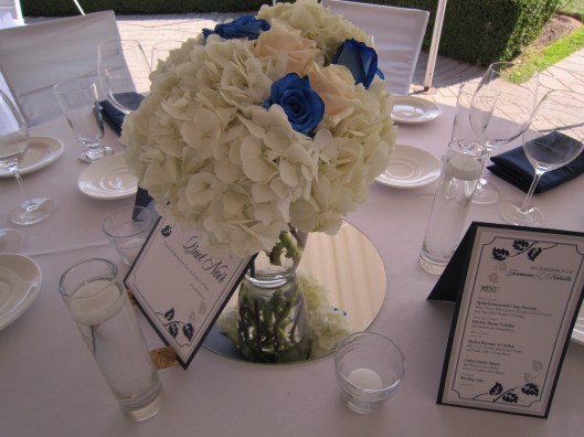 Real Rose Petals in appropriate color on the head table, cake table and receiving table