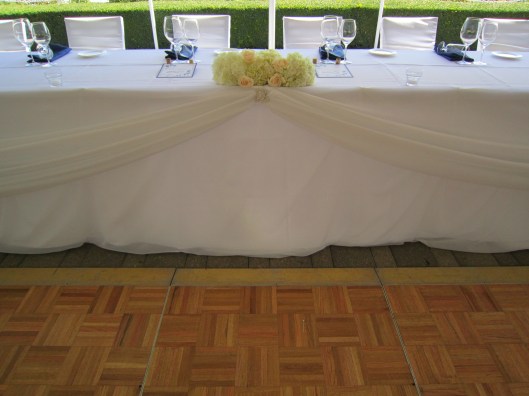 Head Table and Cake Table Draping in sheer linen with spotlights
