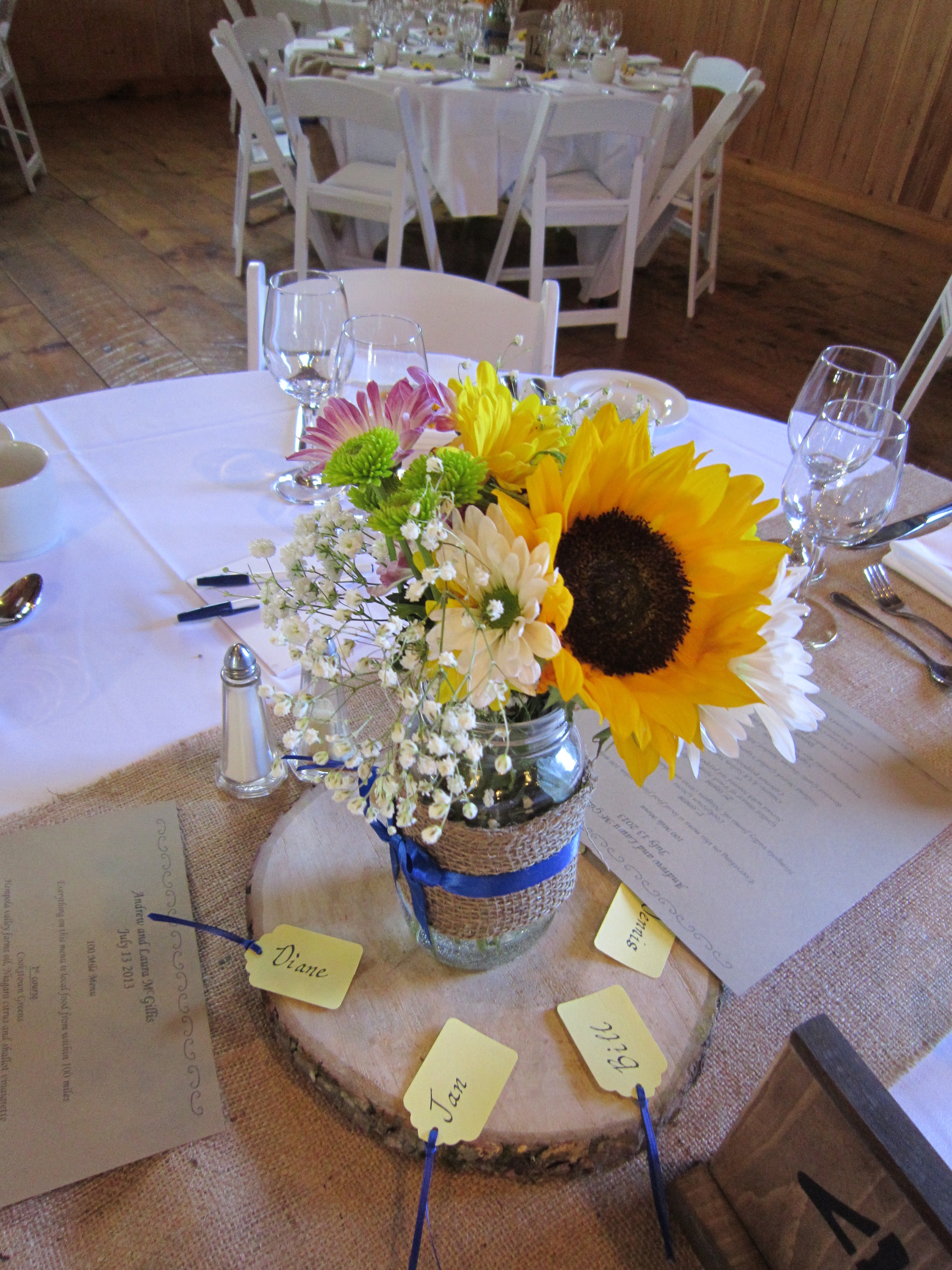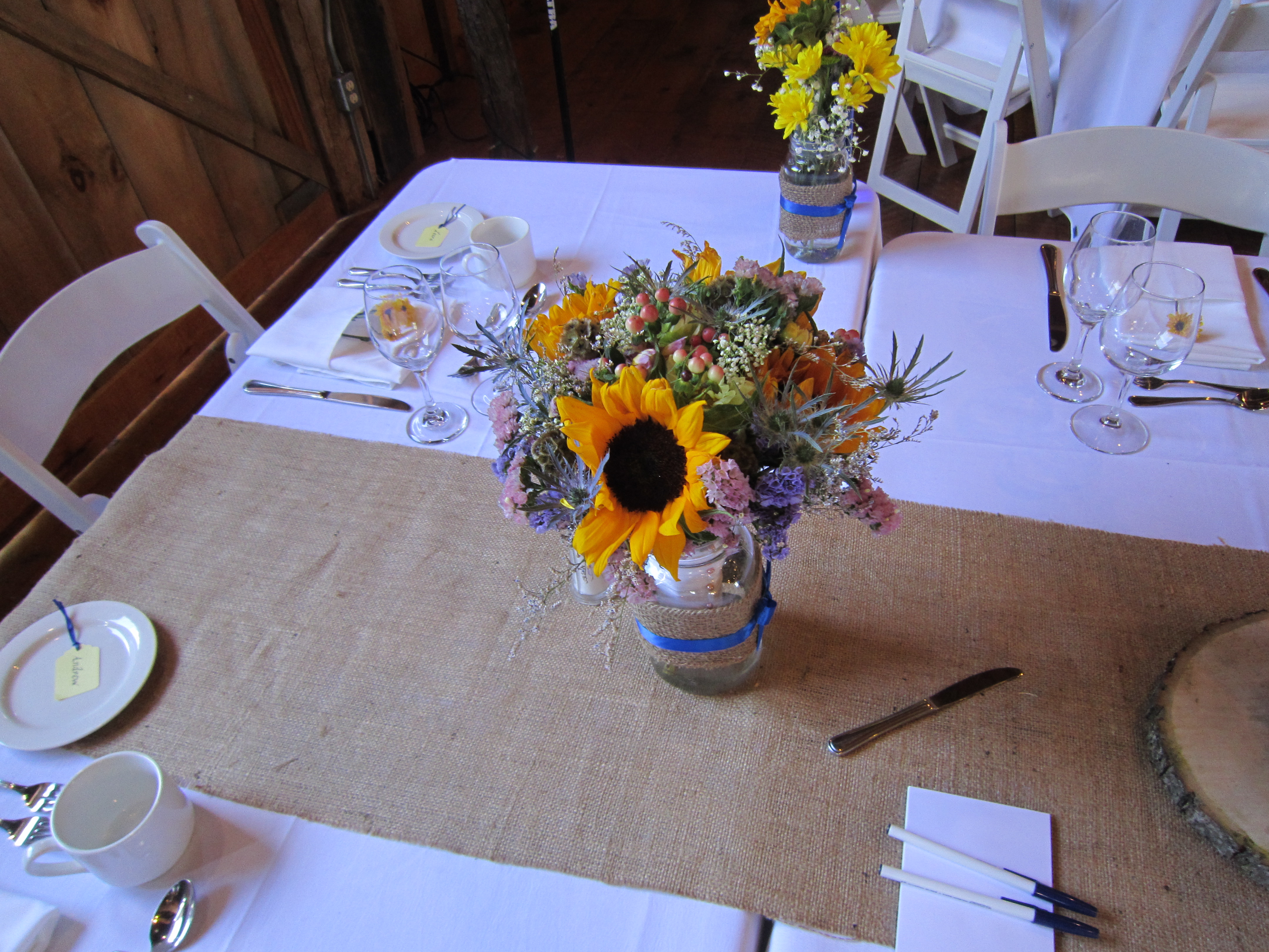 barn wedding, barn wedding decor, belcroft tree farm, belcroft wedding, bridal bouquet, bridesmaids bouquets, gorgeous property, mason jars, perfect weather, rustic bouquet, rustic chic, rustic flowers, rustic wedding decorations, rustic weddings, table runners, wedding bouquet, yellow daisies