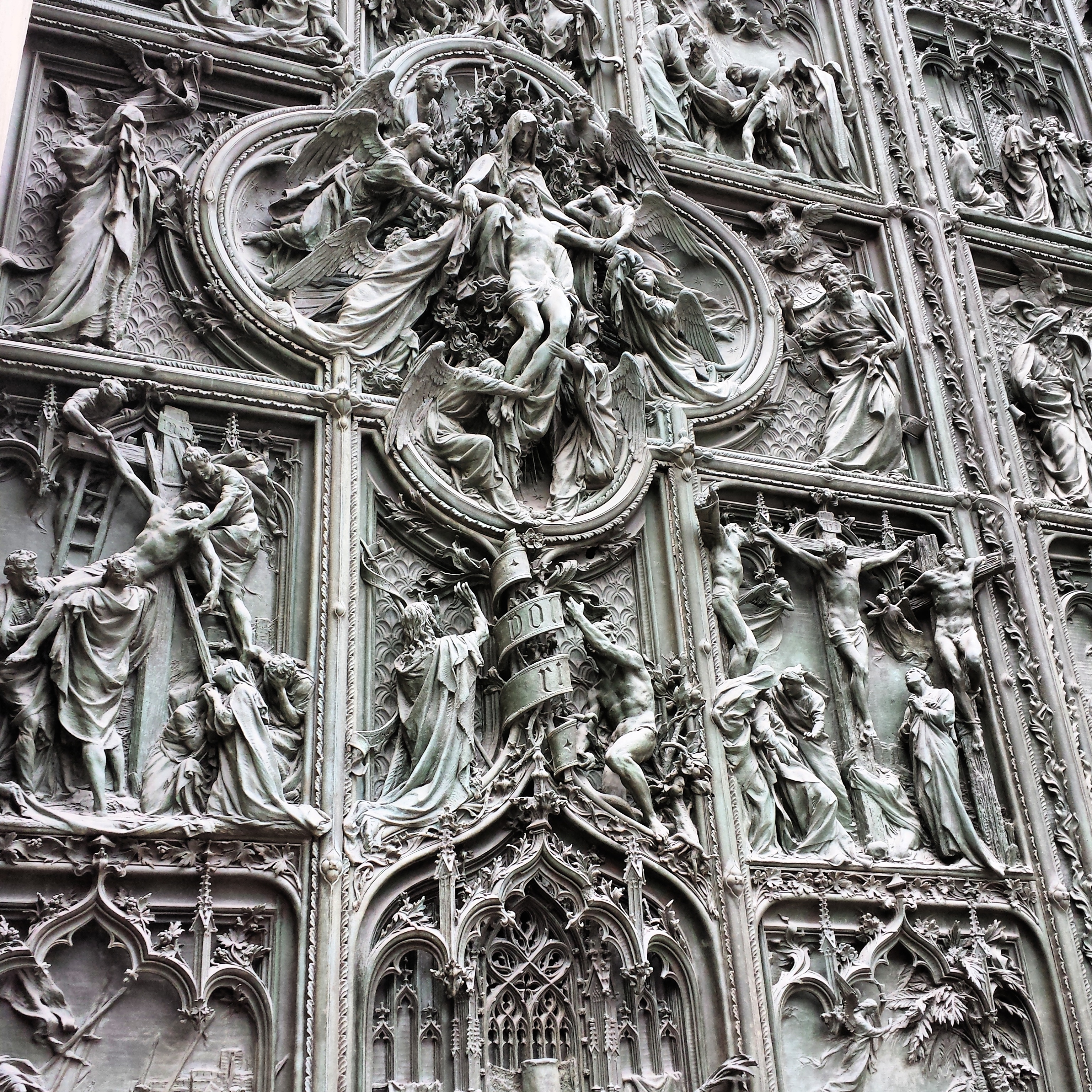 Milan Duomo – this most beautiful detailed church/cathedral I have ever seen. The second image is the door. You could sit there for a month and still find a new detail every day.